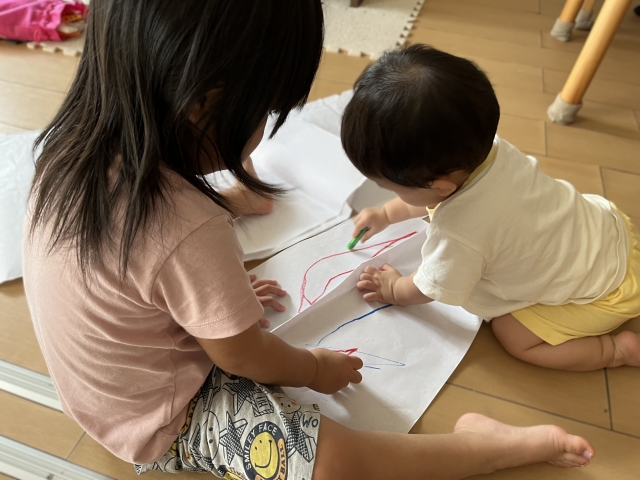 ひも結び・豆運び・ブロック工作・折り紙・紙飛行機・ハサミを使った工作・粘土